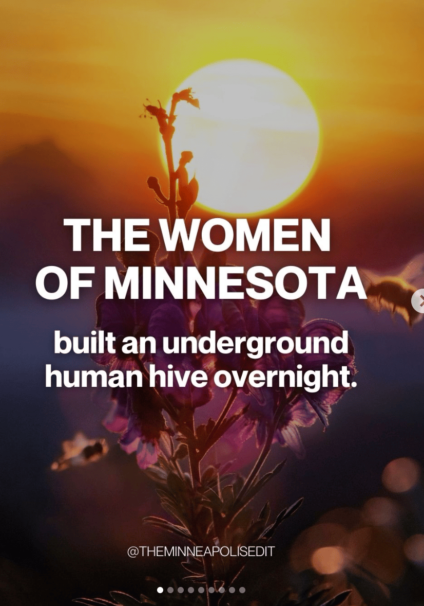 In Minnesota, thousands of ordinary women snapped into extraordinary action in a matter of days. Not in a building. Not under a banner. Inside encrypted chats, in school parking lots, at kitchen tables at midnight, in the quiet architecture of trust that women have always known how to build when the moment demands it.